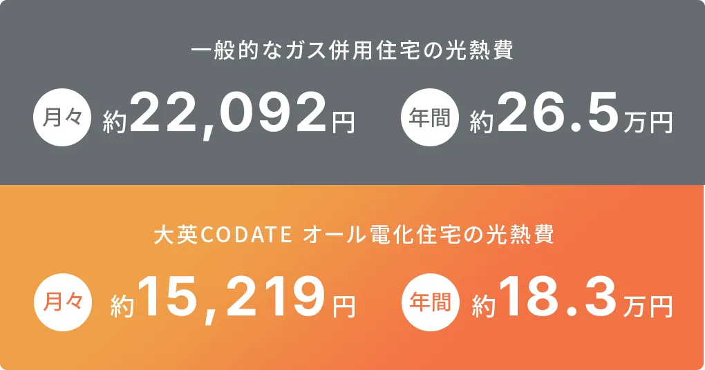 大英CODATEのオール電化住宅を選ぶことで、1年間で約8.2万円、40年間では約328万円の光熱費を節約できます。