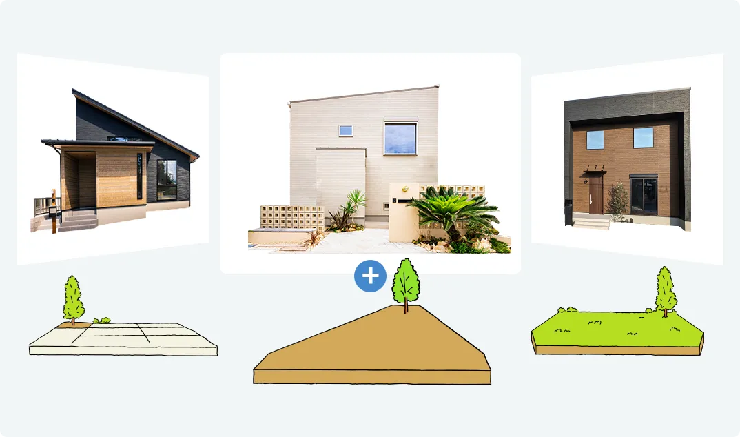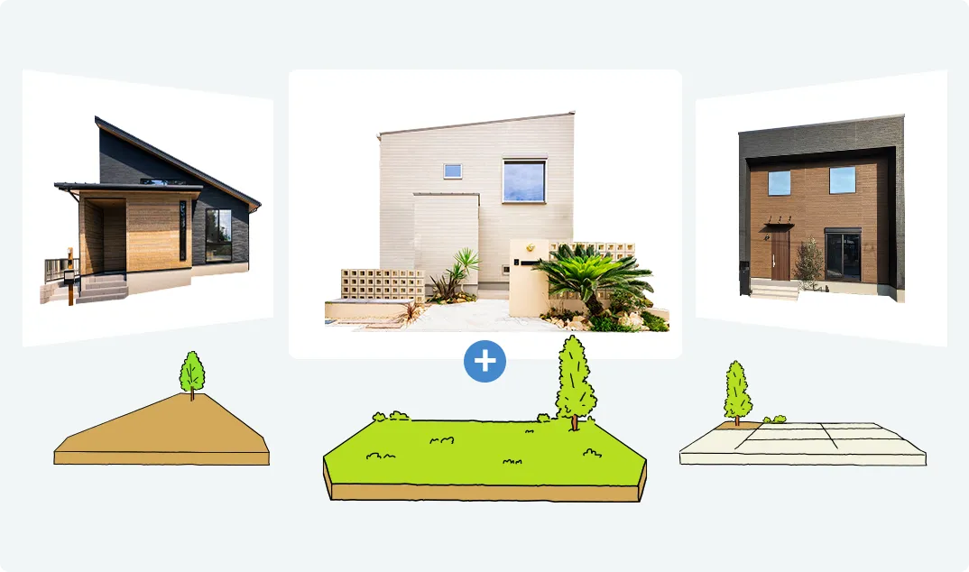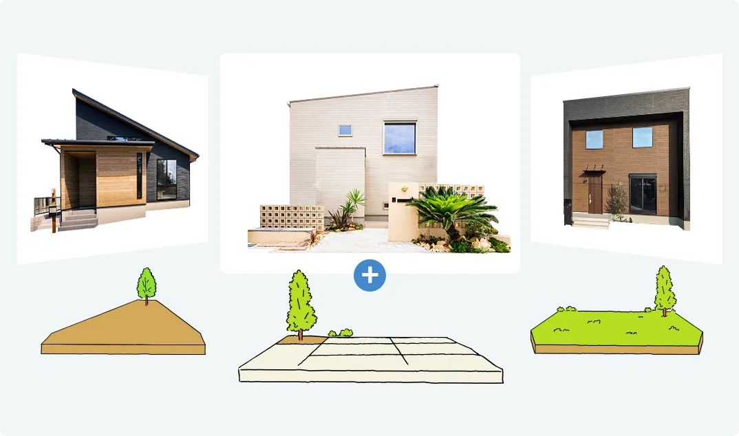 多くの宅地分譲を保有しているため、お好みの立地にライフスタイルに合った商品ブランドから‘注文orセミオーダー住宅’を建設できます。
