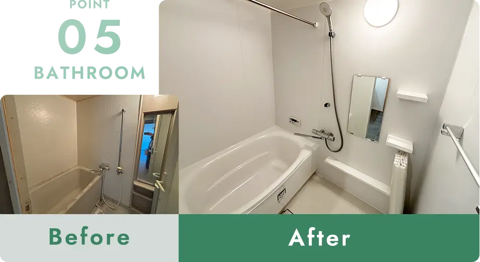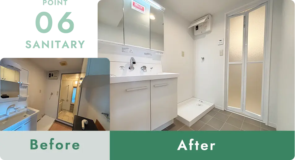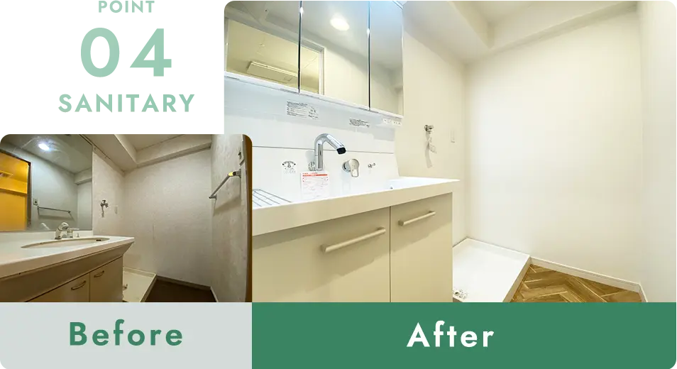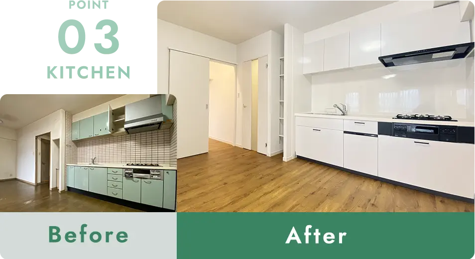 システムキッチンやユニットバスを新設し、水回りを一新。洗面やトイレも清潔で快適に。クローゼットで収納力を高め、各部屋はクロスと床をリフォームして明るくすっきりとした住まいになりました。