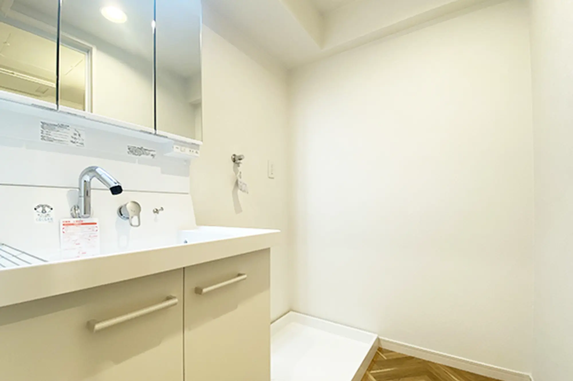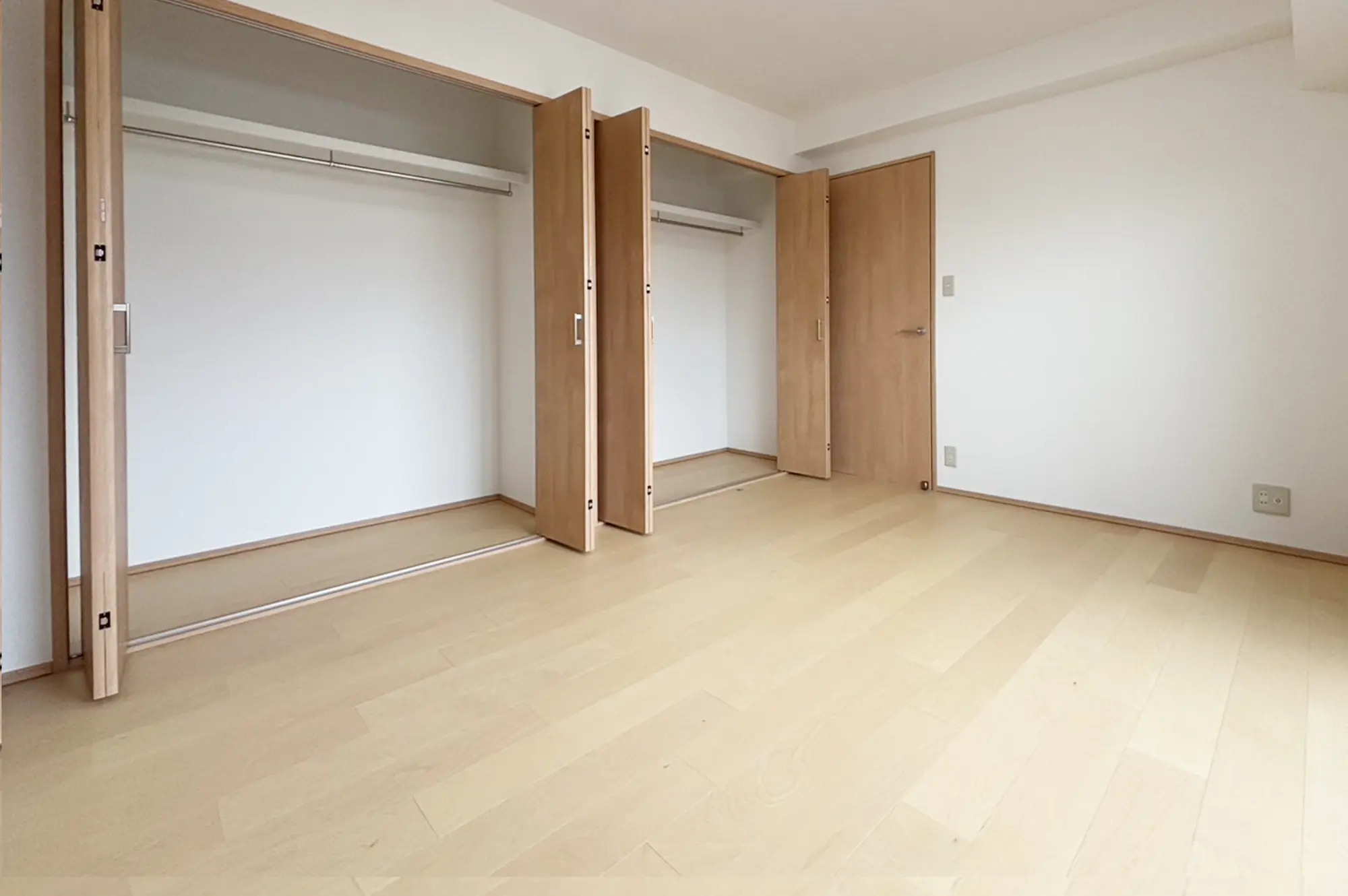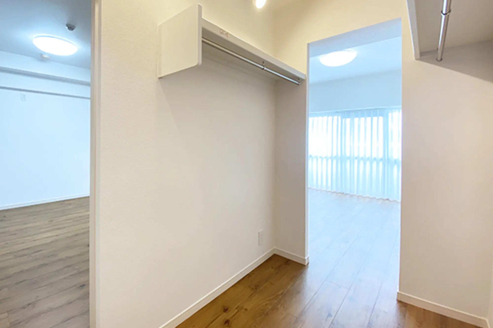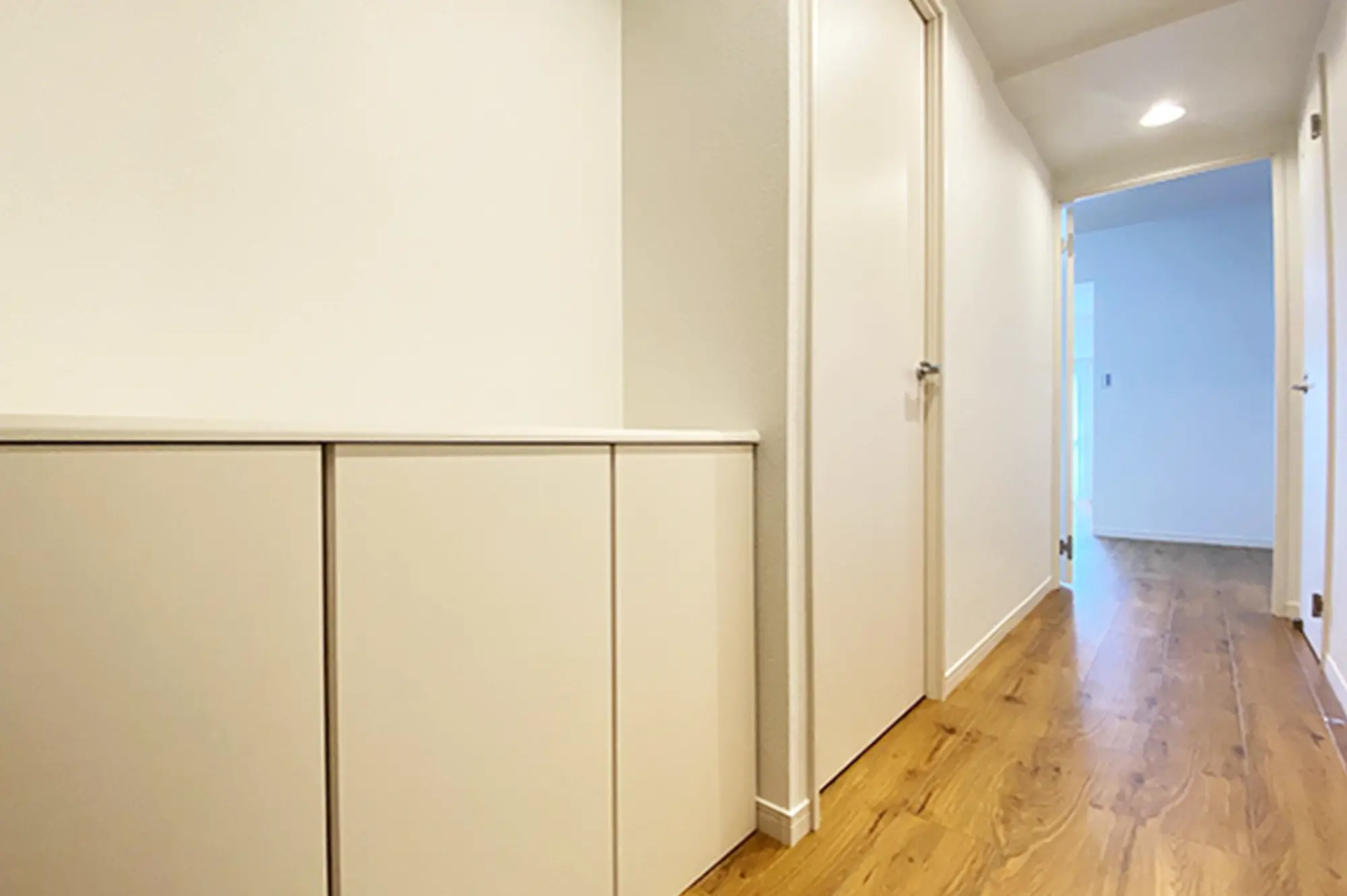 水回りや建具を白で統一。木目フローリングとの調和で上品な空間に。さらに居室を広々ウォークインクローゼットへ変更し、快適さと収納力を兼ね備えた住まいとなりました。